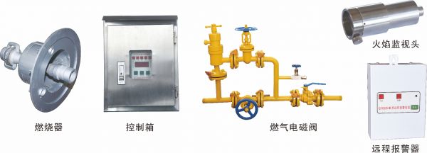 該裝置主要由燃燒器、火焰監(jiān)視頭、控制箱、燃?xì)怆姶砰y、遠(yuǎn)程報(bào)警器組成。